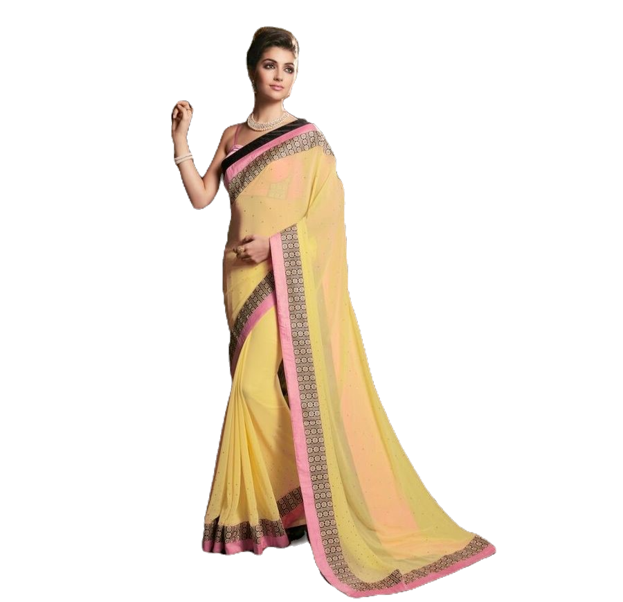 Offwhite to Lemon Shaded Designer Saree with Rani Pink Border